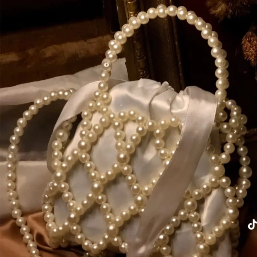 شنطة كريستال فاخرة مزينة باللؤلؤ