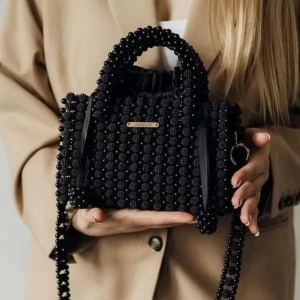 شنطة كريستال فاخرة مزينة باللؤلؤ والخرز يد بسلسلة مصنوعة يدويآ