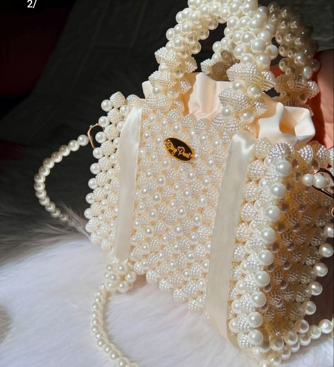 شنطة كريستال فاخرة مزينة باللؤلؤ