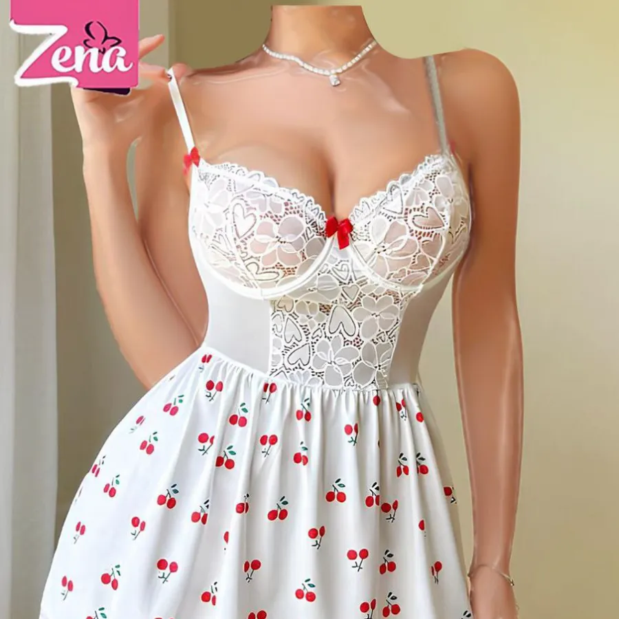 قميص نوم قصير بروب تل و دانتيل مستورد