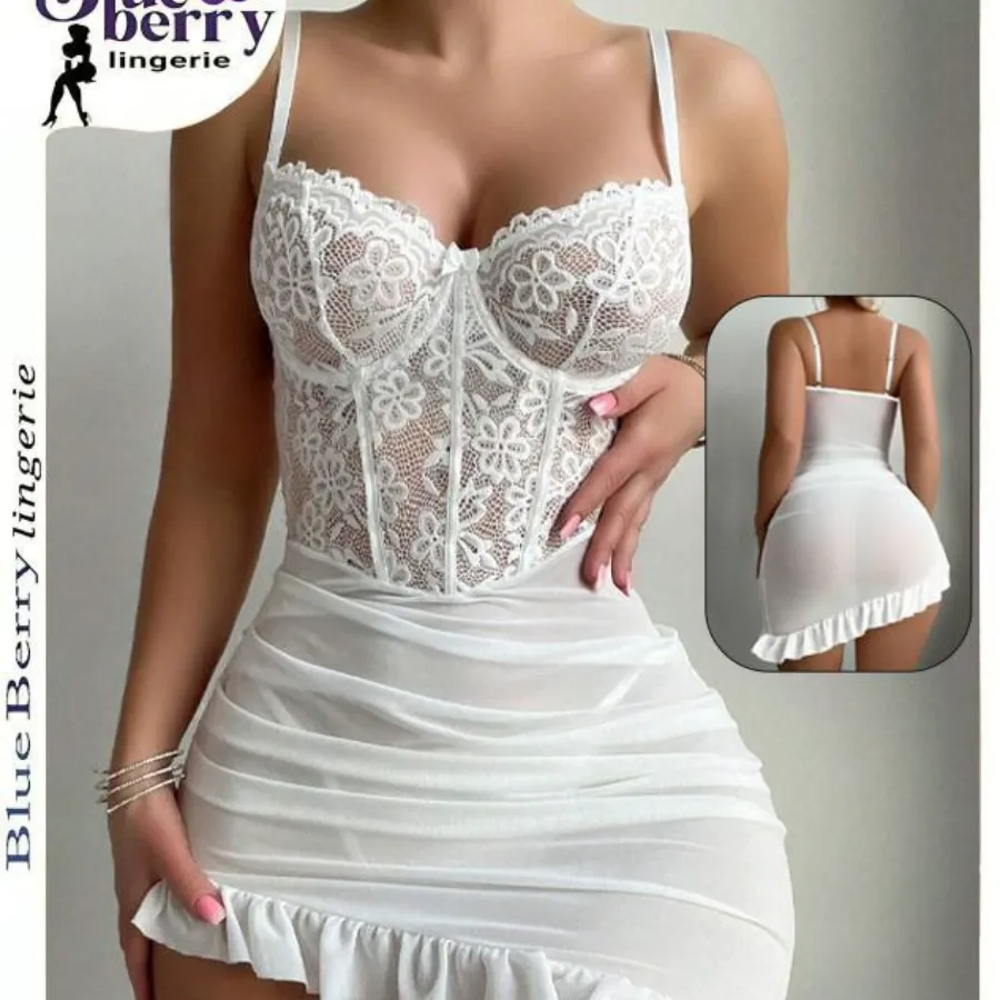 قميص نوم قصير بروب تل و دانتيل مستورد