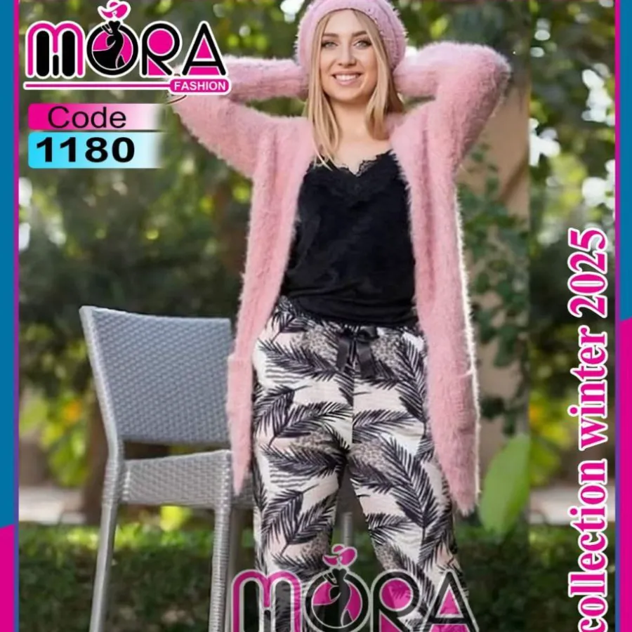 Fortin fashion - بيجامة 3قطع تريكو مبطن على الوشين