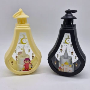 فانوس رمضان كلاسيكي ذهبي وأسود مضئ