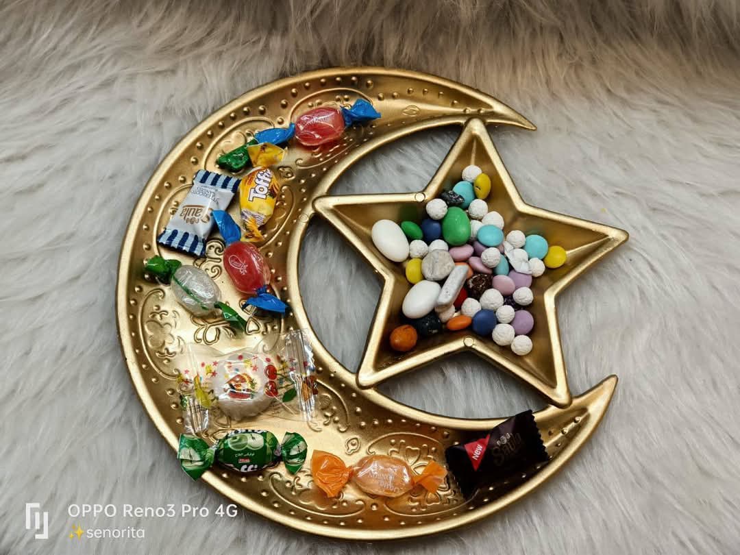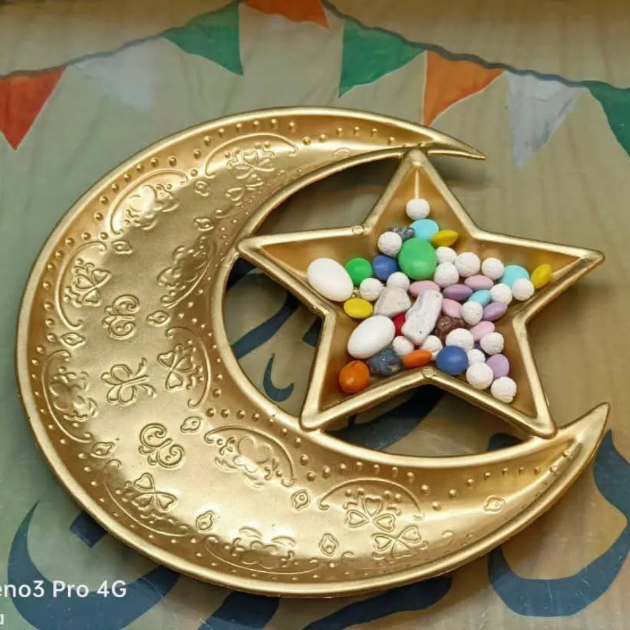 طبق تسالي معدن علي شكل هلال ونجمة أوفانوس
