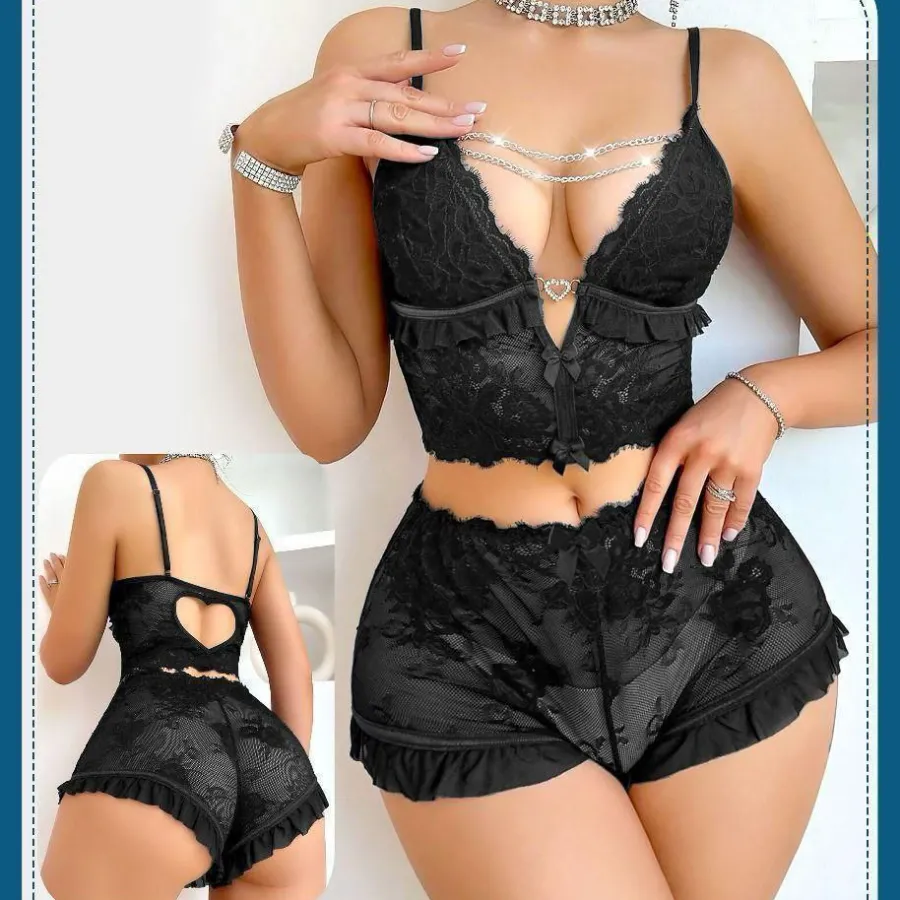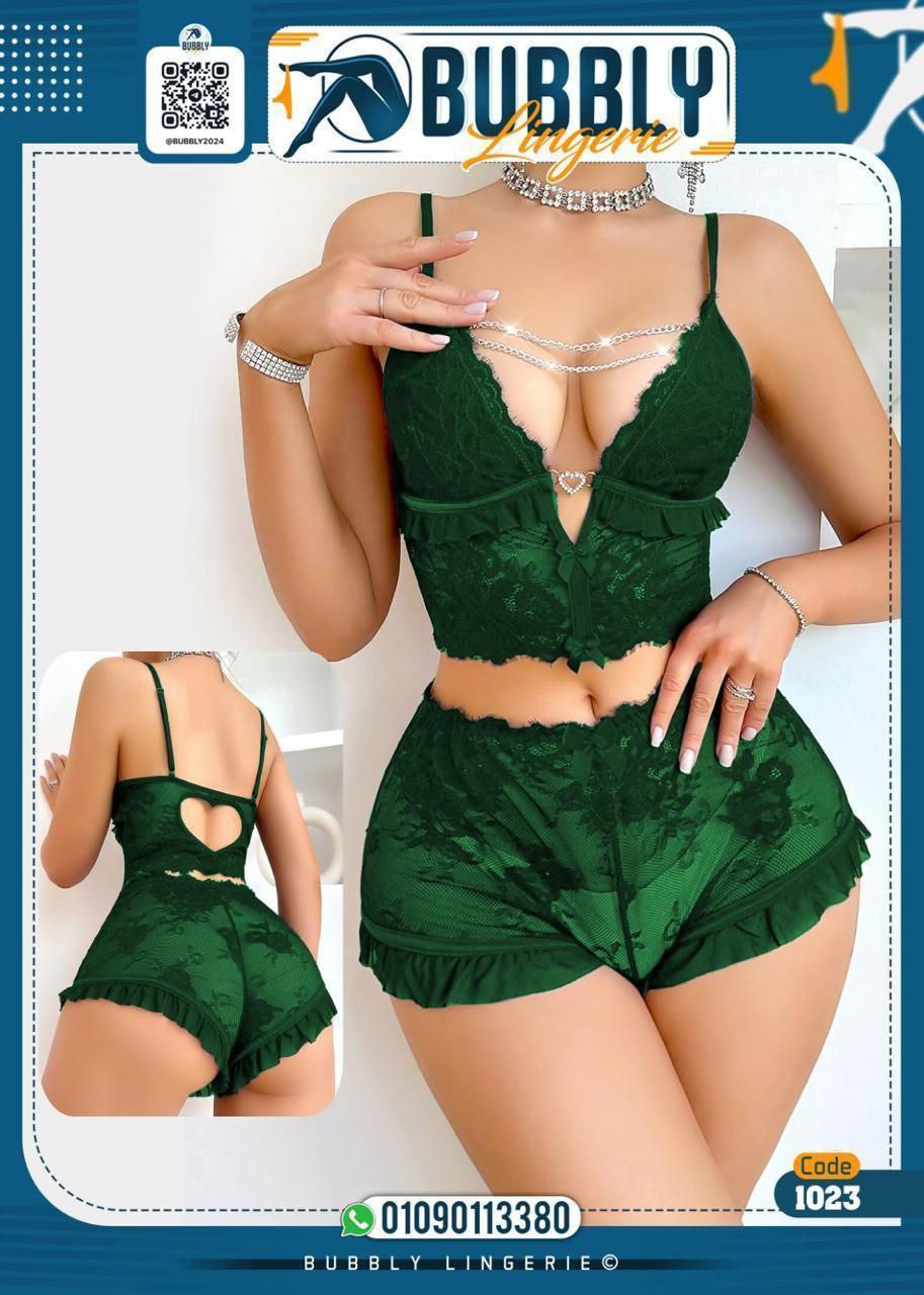 طقم لانجيرى مكون من قطعتين زبدة في دانتيل