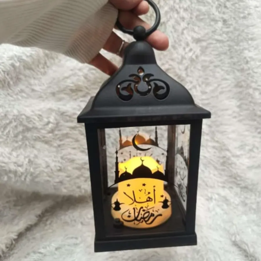 فانوس رمضان معدني بإضاءة بتصميم إسلامي